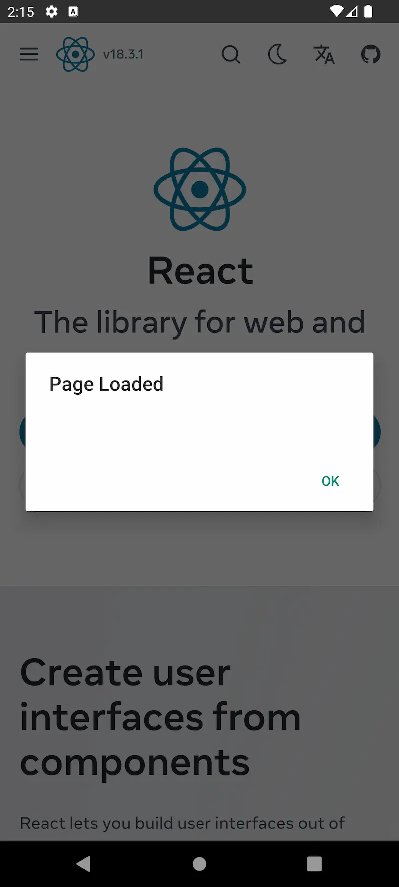 This code creates an app that uses the new WebView component we created to load the react.dev website.